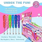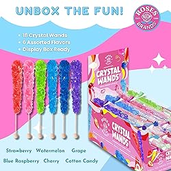 Roses Brands Assorted Crystal Wands Rock Candy in Display Box - 22g Individually Wrapped Sticks- No Fat, No Gluten, No Allergens & Kosher (Variety Pack, 18 Sticks)
