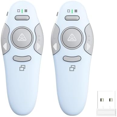 Enhance your classroom lectures, business meetings, or training sessions with this wireless computer clicker for presentations. Designed for wireless control, this wireless power point clicker lets you navigate slides effortlessly from up to 100 feet away Wireless Function: Move around the room confidently with the wireless slide clicker for classroom, ensuring dynamic and engaging interactions Built-in Light Pointer: Utilize the red light pointer clicker for presentation to emphasize key information on screens or whiteboards. Universal Compatibility: Works instantly with PowerPoint, Google Slides, Keynote, and more. Enjoy plug-and-play convenience with the included USB receiver (no software installation required) Simplify your lessons with intuitive controls for slide advance/back, volume adjustment, and black-screen mode. An useful tool for educators, trainers, and professionals. This useful wireless presenter clicker combines functionality with an ergonomic, anti-slip design. Its compact form ensures a comfortable grip for extended use. Whether you're teaching, presenting, or speaking at a conference, this slide clicker and wireless presenter is your trusted tool for achieving a smooth and professional delivery