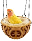 - Give your feathered friends the bird bed they deserve! Our bird hammock for cage is designed with both safety and comfort in mind. Featuring 12 built-in reinforced metal frames and tight weaving, it’s bite-resistant and sturdy, standing up to daily jumping and perching without losing shape. This bird nest for cage offers a long-lasting resting space that’s perfect for small birds like lovebirds, canaries, and budgies. Cleaning is a breeze—simply wash directly or wipe with a wet cloth. The detachable pad makes it suitable for all-season use: add it in winter for extra warmth, remove it in summer to keep your pet bird cool. With four chains and hooks, setup is quick and secure. The chains distribute weight evenly, creating a stable platform that won’t tip or spin, ensuring your finch or parakeet stays safe. The bird hammock also includes a smooth opening edge to prevent foot injuries and a textured surface for secure footing. It’s ideal for sleeping, nesting, and even egg-laying. The gentle swing helps birds exercise and stay active. Plus, the wide 5.31-inch entrance allows easy access, improves ventilation, and reduces anxiety—making it a great bird tent-like retreat inside the cage. Whether you need a bird bed for cage, a parakeet nest, or a love bird nest, this versatile bird hut meets all your needs. Durable, easy to clean, and simple to install—it’s the nicehanging bird bed for your avian companion.
