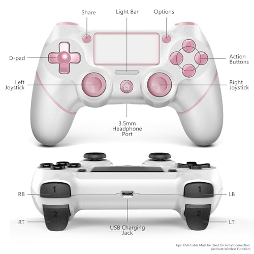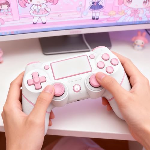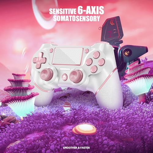 AceGamer 2 Pack for PS4 Controller, Wireless Controller for PS4/Pro/Slim/PC, with Non-Slip Grip of Both Sides,3.5mm Audio Jack and USB-C Cable! (Pink and White)