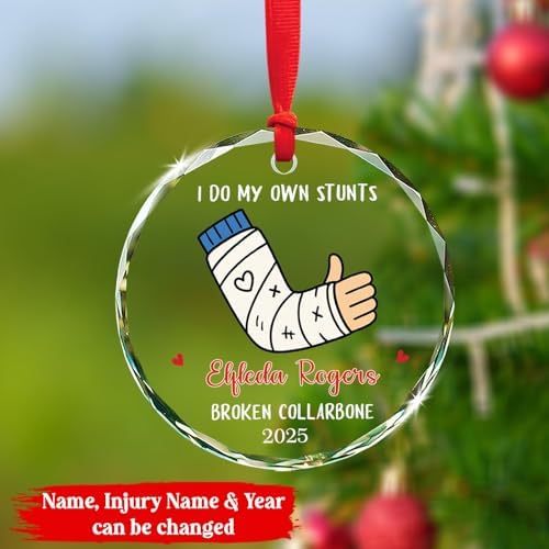 Customized Name Arm Surgery Glass Keepsake Decor, I Do My Own Stunts Broken Arm Christmas Ornament, Personalized Injury Surgery Xmas Tree Keepsake, Custom Bone Injury Christmas Hanging Ornament 2026