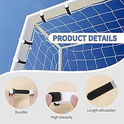 Flexible Placement: Designed with elastic clips and adjustable straps, the soccer net straps provide a quick installation system that enables effortless 3-second setup or removal, simplifying the user experience significantly Great Durability: Built tough for outside fields, the tear-resistant layer and dense weave composition provide lasting resistant to sun, rain, and demanding daily wear and tear Common Fit And Compatibility: Soccer net straps designed to fit standard and kids' goal sizes, ensuring a stretchable fit for various pole diameters, making them ideal for clubs, schools, and backyard fun while delivering good performance and adaptability for multiple uses Travel-Size Comfort: Rolls up neatly for compact storage, lightweight enough to fit in any sports bag, ensuring easy portability and quick deployment wherever needed Anti-Slip Soccer Net Straps: Delivers enhanced security through sturdy construction and an anti-slip mechanism, designed to keep soccer nets firmly attached to metal frames, preventing movement even under demanding use