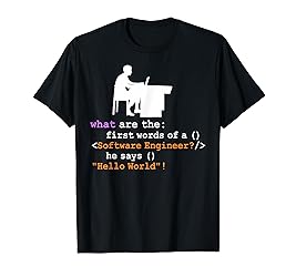 - Software Engineer Design that reads: "What are the first words of a software engineer? He says "Hello World"!". Ideal for any computer engineer who does app development for a living.