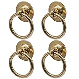 Cionyce 4 Pcs Solid Brass Cabinet Ring Pulls, Solid Vintage Drawer Handles for Kitchen Dresser Closet Cupboard (Gold)
