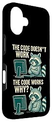 Coding doesn't work, why? Coding works, why? Perfect for programmers, coders, and software developers who enjoy a humorous take on debugging, coding, and tech life. A fun way to show passion for technology and computer science. Great for anyone in the tech world, whether engineers, students, or IT professionals who appreciate clever designs that highlight coding humor and spark conversation. Two-part protective case made from a premium scratch-resistant polycarbonate shell and shock absorbent TPU liner protects against drops Printed in the USA Easy installation