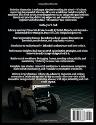 - 💡 Note: This book is written for serious engineers and researchers who want rigorous, high-level technical insight. It’s dense, detailed, and assumes prior familiarity with advanced concepts. If you value precision, depth, and professional-grade explanations—you’ll find this book indispensable. Robotics is no longer science fiction. It’s the factory floor, the hospital ward, the warehouse, the startup garage. Robots are here, and the engineers who know how to move them — quickly, efficiently, profitably — are the ones who win.But here’s the brutal truth: kinematics will make or break you. Most engineers waste weeks “reinventing the wheel” — coding equations by hand, wrestling with coordinate frames, chasing phantom bugs in solvers that don’t converge. Meanwhile, projects stall, managers get frustrated, and deadlines slip.You don’t have time for that. And you don’t need to.This book hands you the shortest path between theory and practice. It’s not an abstract math textbook, and it’s not a glossy magazine overview. It’s a field manual for working engineers. Inside, you’ll discover:Why nobody codes kinematics from scratch anymore — and how the pros stand on the shoulders of proven libraries.The real trade-offs between MoveIt, KDL, Pinocchio, Drake, PyBullet, and MuJoCo — strengths, weaknesses, and when each one will save (or sink) your project.How to get your development environment set up without version hell or endless “it works on my machine” nightmares.Step-by-step guides for forward and inverse kinematics, Jacobians, mobile robots, and simulation-first workflows — all grounded in the tools you’ll actually use.Case studies and failure points from real projects — because in robotics, knowing what goes wrong is half the battle.Performance secrets: caching, optimization, and even real-time constraints that separate hobby demos from production-ready systems.This is kinematics without the ivory tower. Everything is written for the professional who has to ship code, debug under pressure, and make robots perform reliably in the real world.If you’re serious about robotics engineering, this is not optional reading. It’s the map, the compass, and the “watch your back” guide rolled into one.