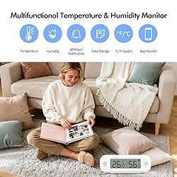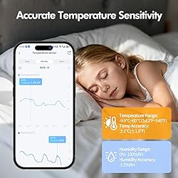 【Smart WiFi Thermometer Hygrometer】Connecting this temperature sensor with 2.4GHz WiFi (5GHz WiFi is not supported), you can view temp and humidity anytime anywhere on the Smart Life app. Wireless temperature humidity monitor supports Remote Monitoring, App Notification Alert, View & Export History Records, Temp Humidity Graphs, °F/°C Reading and Intelligent Linkage Functions. 【LCD Display & Accurate Readings】Our indoor thermometer sensor is equipped with high-definition LCD display for easy reading. With ±1℃ (±1.8°F) accuracy in temperature from -9.9℃~60℃(14.2°F~140°F) and ±5% in humidity from 0-100%. 【Smart App Alerts】It supports high-and-low temperature/humidity alerts and low battery alerts. Set preset temp and humidity ranges, and the WiFi indoor thermometer will alert you via app when the temperature or humidity is out of the range you set. Please note that the device itself does not sound an alarm. 【Create Smart Linkage】Creating smart scenes with other your smart devices in your Smart Life app to turn on/off the smart devices automatically. Such as, "when the temperature over 27℃, turn on the air conditioner." 【Support Voice Command】WiFi temperature humidity monitor compatible with Amazon Alexa and Google Home. After connecting Alexa and Google, you can know the current temperature or humidity data through your voice. For example, you can say "Alexa, what's temperature in the baby room?" Note: The temperature data will not be displayed on Alexa App. 【Free Data Storage & Export】Enjoy remote monitoring with the Smart Life APP, including online viewing the temperature and humidity yearly, monthly, daily, or by the hour, and exporting data over the past 1 years. Perfect for wine cellars, basements, etc.