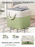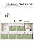 【Universal 11-Inch Fit】 Designed with dimensions of 11(L) x 11(W) x 11(H) inches, these cube baskets provide a tailored fit for most standard cube organizer shelving units and closet systems. They maximize your storage space while keeping your room looking neat and uniform. Perfect for decluttering your home and tidying up closet shelves all at once. (Please confirm your shelf size before ordering) 【Premium Breathable Fabric】 Made from high-quality linen-like fabric that is breathable and odorless. The interior features a smooth lining that is easy to maintain—simply wipe with a damp cloth to remove dust or stains. Our baskets are constructed with sturdy EVA material sandwiched between fabric layers, providing a water-resistant barrier, shielding your items from moisture and dust. 【Reinforced Metal Frame Support】 Each storage cube features a strong metal rod frame around the top rim to maintain its square shape. While the soft sides allow for flexibility, the metal rim ensures the opening stays accessible. NOTE: Baskets arrive folded; wrinkles are normal. Please steam iron or stuff with soft items for 24-48 hours to restore their sturdy, upright shape. 【Soft Braided Rope Handles】 Elevate your home decor with our thick, soft cotton rope handles. Threaded through reinforced metal grommets, they offer a comfortable grip and superior load-bearing capacity compared to sewn-on fabric handles. Easily slide these drawers in and out of shelves without worrying about handles tearing off. 【Versatile & Space-Saving Design】 The minimalist design complements any room decor. Perfect for organizing items in the nursery, bedroom, living room, laundry room, or office. When not in use, simply fold the basket flat for space-saving storage.