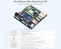 - Description --- Dual Ethernet Base Board for Compute Module 5, standard CM5 socket and color-coded Raspberry Pi 40PIN GPIO header. Suitable for Compute Module 5 Lite / eMMC series module. M.2 M KEY, 4G / 5G module compatibility, compatible with communication modules with M.2 B KEY interface. --- Supports connecting to M.2 NVMe Drive: Faster reading/writing speed compared to the TF card slot of Raspberry Pi, greatly improving reading/writing efficiency of the system or files, Supports booting Pi5 from NVME Solid State Drive. Supports 2242 / 2230 NVMe Solid State Drives or AI modules. --- Networking: 1000M Ethernet RJ45 port x 1, 2500M Ethernet RJ45 port x 1. MIPI: 4-lane MIPI interface × 2 (22PIN 0.5mm FFC connector). Video: HDMI port × 2, supports dual 4K display outputs. --- Dual MIPI interfaces: for connecting to DSI displays or CSI cameras. PoE Header: for connecting PoE module, supports PoE power supply through 1000M Ethernet port using PoE switch. Comes with Online Tutorial Usage Guide and Online Development Resource, Please check: n9.cl/lir27 Package Content CM5-DUAL-ETH-4G/5G-BASE x1 Screws pack x1