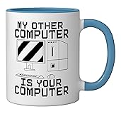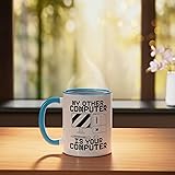 My Other Computer Is Your Computer - This is for computer hackers looking for hacker stuff to wear while phishing. A gifts for a professional game hacker who can bypass any cybersecurity. Ideal for hacker outfit to show your hacking knowledge. This hacking graphic is for programmers and pen testers doing some penetration test to prevent password attacks. A present for proud hackers who are experts in cybersecurity hacking. Impress everyone at the next hackathon wearing this hacker apparel. 11-ounce ceramic mug is dishwasher and microwave-safe, lead and BPA free Features glossy finish with accent colors on interior, handle, and rim of two-tone designs