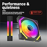 Dual-track RGB LED Light Strip: It adopts a dual-track lighting design and is equipped with high-brightness light beads, capable of presenting translucent yet vibrant RGB lighting effects, thus creating a cool atmosphere for the chassis High wind and low noise fan blades Balanced 9 blade design, increase the output wind pressure Improve the efficiency of heat dissipation, easily blow away the excess heat of the host,1000~1650RPM;≤29DBA The fan speed is 800-1600 ±10%, with an air volume of 58.36 CFM and a fan pressure of 2.07, ensuring cooling efficiency. The operating noise is only 29 dBA, balancing quietness and cooling performance Hydraulic bearing Ensure high speed operation, reduce wear, reduce noise, improve service life The bottom of the fan has a magnetic suction, which attracts the steel column on the fan page and has a strong suction force Double-sided shock pad The silicone cushioning pad can effectively reduce the noise caused by resonance when installed on the chassis Warm tip: The power supply interface of the fan is small 4Pin and the light signal interface is 5V3Pin. Please confirm whether the motherboard you choose has 5V3Pin interface before purchase. If the motherboard does not have 5V3Pin interface, you need to purchase another control box to realize the synchronization function