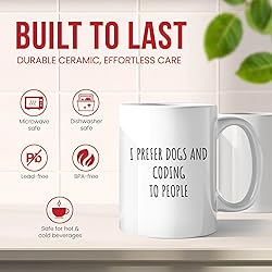 I Prefer Dogs And Coding Mug - Programmer Coffee Cup - Funny Gift From - Developer Tea Mugs - Coder Cups - 11 Oz Ceramic Gifts For Engineers, Birthday, Him, Her, Christmas, Day, Computer Science