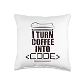 I Turn Coffee INTO Code Fun Web Developers Coding Meme Throw Pillow