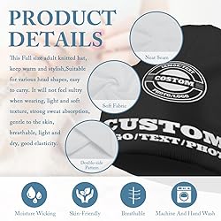 Custom Beanies:You Can Choose Text, Logo, Image Or Anything Else To Make Your Own Funny Beanie. Click On "Customize Now" To Upload The Logo And Text To Custom Winter Hat. Premium Soft Polyester Material: Crafted from high-quality, lightweight Polyester yarn, this beanie is incredibly soft to the touch, itch-free, and provides excellent warmth. It's durable, retains its shape wash after wash, and is comfortable for all-day wear. Applications: Suitable For Sports, Outdoor, Daily And Party Wear.Like: Climbing, Running, Travel, Hiking,Fishing, Games, Gym And Etc. Please feel free to put this beanie on, and experience the comfortable touch of it. Perfect For Any Occasion: This versatile hat is ideal for countless scenarios! It's a fantastic gift for holidays like Christmas, a memorable birthday present, a thoughtful anniversary surprise, or simply for everyday use during fall and winter. Notice:Please Confirm The Size, Font, Color And Image Of The Personalized Before Purchase.If For Any Reason You Aren'T Happy,please feel free to reach us, we will help you in every possible way!