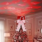 Enchanting Romantic Design: the Valentines tree topper with light projector brings a sweet and romantic touch to your decor; Featuring a heart linked "love" design and bow, it blends classic aesthetics with Valentine's flair, creating a cozy festive atmosphere that stands out Romantic Atmosphere Enhancer: our romantic Valentines tree topper offers an LED projector that casts mesmerizing heart patterns, enhancing any room with a touch of romance; You can adjust the distance and direction to personalize the display, with a range of about 3 to 4 ft; The farther the projection distance, the larger the area; The closer the distance, the clearer the image Quality Craftsmanship: crafted from quality velvet, springs, and wire, this tree topper hat boasts durability and elegance; Measuring about 10 x 10 x 8.7 inches, it features a foldable metal spring for easy storage, ensuring your Valentines tree topper decor remains pristine and ready for use Effortless Installation: installing the Valentines tree topper with light projector is quick and easy; Simply insert the projector into the Valentines tree topper hat, place it atop your tree, make necessary adjustments, and plug the USB into a power source; Enjoy the enchanting heart patterns projected onto your ceiling Versatile Decorative Enhancements: beyond topping your Valentine's tree, this romantic Valentines tree topper seamlessly integrates into various settings; Ideal as a centerpiece for your table, or placed in rooms, kitchens, or on shelves, it complements other Valentine's decor