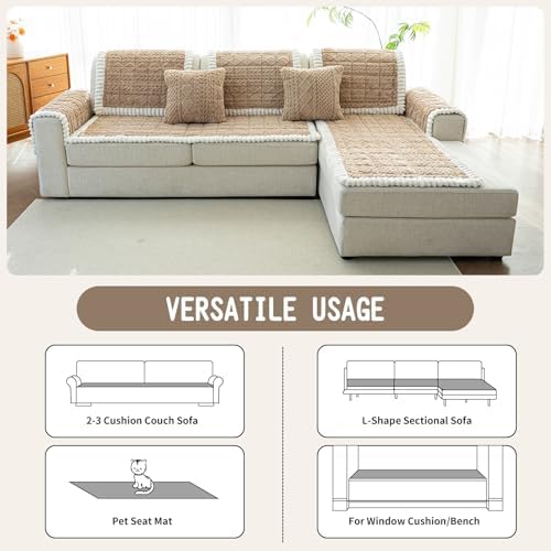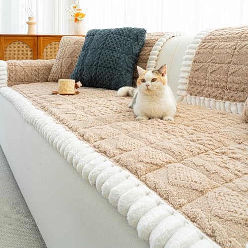 Sofa Pad, Plush Couch Cover Washable for Pet, Non-Slip Warm Couchs Cover, Funny Fuzzy Pet Couch Covers for Sofa, Sofa Slipcovers Furniture Covers for L Shaped(Light tan, 27.6"x 70.9")