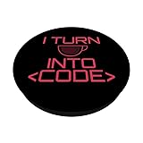 I TURN COFFEE INTO CODE. If you're a professional front-end, backend, full-stack, software, or UI/UX developer, you know how easy it is to obsess over codes and programming languages. Fun meme for your favorite developer who codes all day! Stay caffeinated! Great for a computer programmer, coder, anyone into web development. Click on the brand name for more funny coding memes. Adhesive backing attaches the PopGrip to your case or device. Will not stick to silicone, leather, waterproof, or highly textured cases. Works best with smooth, hard, plastic cases. Not compatible with wireless charging Printed top is swappable with other compatible PopGrip models. Just press flat, turn 90 degrees until you hear a click and remove to swap.