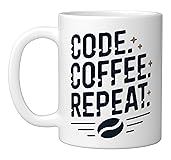 Code Coffee Repeat Programmer Developer Coder Life Ceramic Mug, White