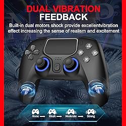 【2 Packing】Two controllers are packaged in one box, which is less costly than buying two controllers separately,which is very cost-effective.This will bring you a better game experience when you play with your friends, lover, family. 【Extensive Compatibility】The NBCP WOlF V-2 wireless gaming controller is compatible with PS4/Slim/Pro and supports Bluetooth wireless connectivity with iOS/Android devices, smartphones, tablets, and laptops. It also offers wired connectivity with PS3 and PC (Windows 7/8/10/11). Enjoy your favorite games across a wide range of supported platforms.*Attention*: P4 Only when connecting for the first time, you must activate the device with the USB cable for the first pairing and connection. After that, the normal wireless connection of Bluetooth can be made, and USB data cable is no longer needed. 【Self-Correction Function】The WOlF V-2 controller features self-calibration for the thumbsticks, triggers, and 6-axis gyroscope. If drifting or gyro inaccuracies occur after extended use, simply activate the built-in correction function to restore precision. It also comes with crystal-action buttons designed for zero wear, ensuring the controller’s longevity is significantly extended. 【Hall Effect Triggers】Equipped with dual Hall effect triggers, the controller delivers highly accurate input with no physical friction. Whether you're racing or fighting, experience smoother and more refined control in your gameplay. 【Versatile Gaming Assistance】With a built-in 6-axis gyroscope, the controller enhances immersion across various game modes and scenarios. It supports semi-auto and full-auto TURBO modes for faster skill execution. The D-pad and left thumbstick are functionally interchangeable, giving players the flexibility to choose their preferred control style. 【Rich Hardware Features】The controller includes a 2-point touchpad for precise input, dual vibration motors and a built-in speaker for immersive feedback, and a 3.5mm audio jack with a microphone toggle switch for privacy control during gameplay. Note: Only supports CTIA-standard headphones. OTMP-standard headphones are not compatible. 【To Be NBCP Gamer】You can get: 2x NBCP WOlF V-2 controllers wireless for ps4 ; 2x Charging Cable; 2x User Manual; Professional after-sales service. We focus on the design, production and sales of custom controllers. If you have any questions, please contact us in any time!