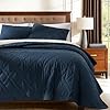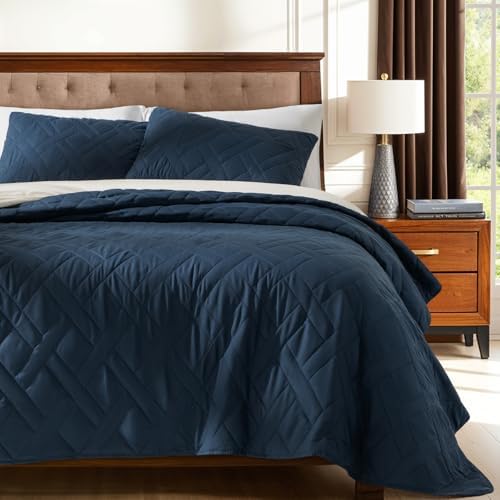 SONORO KATE Quilt Set Queen Size,Geometric Diamond Stitched Pattern, Lightweight Reversible Quilt Bedding Set for All Seasons with 1 Quilt 2 Pillow Shams (Navy Blue-1,Queen)