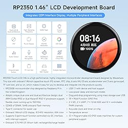High-Performance Microcontroller: The RP2350-Touch-LCD-1.46 is equipped with the RP2350B microcontroller chip, designed by Raspberry Pi, UK. It features a unique dual-core architecture with ARM Cortex-M33 and Hazard3 RISC-V processors, running at up to 150 MHz, providing excellent processing power for embedded applications. Comprehensive Onboard Features: This board integrates a 1.46-inch capacitive touch IPS LCD (412×412 resolution, 65K colors), an RTC chip, a 6-axis IMU (3-axis accelerometer and 3-axis gyroscope), a 3.7V MX1.25 lithium battery, and a TF card slot, offering everything needed for rapid prototyping and product integration. Rich Connectivity & I/O Options: The RP2350-Touch-LCD-1.46 includes 14 multi-function GPIO pins, 2 I2C, 2 UART, 7 12-bit ADCs, and 12 PWM channels, making it ideal for a wide range of projects requiring advanced sensor and peripheral control. Power Efficiency & Flexible Programming: With low-power sleep modes, a USB 1.1 interface (device and host support), and drag-and-drop programming via USB mass storage, it allows for efficient power management and easy programming. It also includes an onboard temperature sensor and accurate clock/timer features. Advanced Customization Support: The board provides 12 programmable I/O state machines for custom peripheral support, enabling developers to tailor the board's functions to their specific application needs, ensuring flexibility and scalability in development.