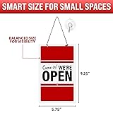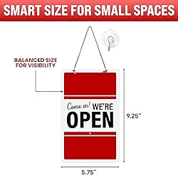 CLEAR COMMUNICATION FOR CUSTOMERS | This business hours sign ensures visitors know when you’ll be back — the adjustable clock lets you set a specific return time so customers never guess when to return. DOUBLE-SIDED DESIGN | This be back sign with clock features printing on both sides for visibility from any angle, making it ideal for glass door or window display. EASY TO MOUNT | Includes a suction cup for glass doors and windows and a twine rope option for hanging — offering flexibility for different surfaces and storefront styles. EYE-CATCHING & PROFESSIONAL | The bright red color draws attention while maintaining a clean, modern look that fits retail shops, offices, restaurants, and service counters. DURABLE & LONG-LASTING MATERIAL | Made of sturdy plastic, this hours of operation sign for business resists bending and fading for extended indoor or outdoor use.