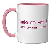 Linux Sudo rm rf Programmer, Engineer, Opensource Funny Ceramic Mug, Pink/White