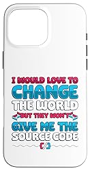 Funny saying for progammers who would like do debug the world and update the code. Great programming themed motif for coding enthusiasts. I Would Like To Change The World But They Won't Give Me The Source Code. Two-part protective case made from a premium scratch-resistant polycarbonate shell and shock absorbent TPU liner protects against drops Printed in the USA Easy installation