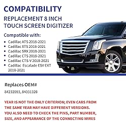 Replaces the original part number: Compatible with Cadillac CUE ATS Escalade SRX 8-in touchscreen radio screen. The TsuperU uses upgraded materials, offering superior sensitivity, high definition, high temperature resistance, and is non-bubbling and non-whitening. With this part, you won't need to go to the dealer for a replacement, as they often recommend replacing the entire radio, which could cost thousands of dollars, but is completely unnecessary. Please watch the replacement video on YT's EASY PROBLEM SOLVED: If your display touch screen is cracked, delaminating, bubbles, White, fogging, air holes, unresponsive, has garbled, phantom, ghosted, ghosting, dead pixels, unresponsive, or looks bad, simply replace the TsuperU 8-inch screen navigation touchscreen and it will return to its original functionality without the need for a trip to the dealership for costly repairs. One replacement is all it takes to fix the problem COMPATIBLE WITH COMPATIBLE MODELS: Navigation screen fits Cadillac CUE ATS Escalade ESV EXT SRX XTS ELR CTS CTS-V radio digitizer screen 2018-2021. please check the OEM number and size carefully before purchasing, compare with your original parts to make sure that this touch screen fits your car. There is also a 2013-2021 touchscreen model available on the market, but these are only compatible with a limited number of vehicle models, and some vehicles remain incompatible EASY TO INSTALL: The product comes with adhesive, you only need to tear off the protective film to use it, easy to install. for Cadillac CUE ATS Escalade ESV EXT SRX XTS ELR CTS CTS-V Vsport Platinum Luxury Base Spor Coupe V radio screen is an exact fit for the original vehicle. For display only 84232093 84031328. The digitizer screen for the 8-inch touchscreen radio works with both GPS-equipped radios and non-GPS radios TOUCH RESPONSIVE: Touch screen meets OEM navigation system, high light transmission, high visibility, responsive, high touch accuracy. touch screen monitor is made of new upgraded material with high resolution, high clarity, more stable performance, faster response time, and has been rigorously tested to ensure a long service life, touch screen replacement