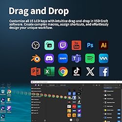【Numeric Keypad Mode】 The N1 Stream Controller Deck offers three different modes of operation, whereas similar products on the market only support custom keyboard mode. By pressing and turning the knob, you can switch between shortcut key mode, calculator mode, and numeric keypad mode. Calculator mode simplifies mathematical operations, while numeric keypad mode compensates for the limitations of a compact keyboard as well as being a very good left-hand device. 【18-key Customizable Macro Keyboard】 The N1 features 18 macro keys, consisting of 15 visual LCD buttons, 2 clickable buttons, and 1 rotary knob. In conjunction with the dedicated “VSD Craft” software, you can freely assign the function of each key to suit your preference. Key icons can be customized by drag & drop, taking screenshots, or selecting images. This unleashes unlimited personalization possibilities and instantly transforms your desktop into a highly efficient tool. 【Multi-Scenario Quick Controls 】 Customize dedicated shortcut scenarios to suit your needs: Daily mode instantly launches frequently used software, documents, and web pages; Work mode sets up quick controls for Photoshop/DAW/Premiere Pro/Blender and other software; Live mode sets up quick controls for your favorite software; and Work mode sets up quick controls for your favorite software. Live Streaming mode provides easy control of OBS streaming, while Media mode conveniently adjusts playback controls. In addition, automatic workflows can be set up to perform multiple tasks in a specified order, precisely tailored to your usage requirements. 【Wide Application Compatible】N1 Stream dock works seamlessly with PC, Windows, and macOS, plus OBS Studio (Windows 10 64-bit+/macOS Catalina 10.15+), Streamlabs, Just connect via USB-C and you're up and running in seconds, and the included software is very easy to install and operate. The USB-C connection makes it easy to get up and running in seconds, and the included software is very easy to install and operate. 【Extensive Plugins Marketplace】The Stream Dock equiped with VSDinside marketplace for you to download, It offers thousands of free and premium options, including 200+ plugins, icons profiles and scenes for controlling apps like Discord, Twitch, and OBS for streamers and podcasters. 【Supports dynamic icons】While most stream dock on the market are limited to static image icons, the N3 breaks new ground—going beyond basic picture icons to support dynamic animated ones. What’s more, you can even use your favorite animations to create custom animated icon scenes for your device, transforming your interface from dull and static to uniquely vibrant and full of personality. 【Please Note】If you want use Spotify integration, you must have an active Spotify Premium account. 【Technical Support】If you encounter any issues during use, our dedicated engineering team is ready to assist you promptly.
