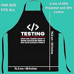 A FIT FOR EVERYONE: With an adjustable neck and long ties, it fits most body types for men and women. DURABLE POLY-COTTON: This apron's poly-cotton fabric is tough on stains and simple to wash. A perfect for: software tester, quality assurance (QA) specialist, developer, teacher and professor. Apron There are a lot of talking about software testing in universities, but everyone seems to forget it. Wear this funny among your fellow IT guys and you will get noticed. POCKETS FOR CONVENIENCE: Keep items you need in the two conveniently placed front pockets.