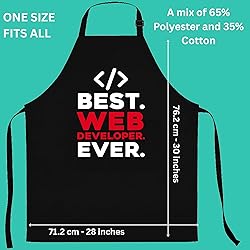 STURDY POLY-COTTON BLEND: Stay protected with a durable poly-cotton material. It's built for daily use and is machine washable. FITS EVERYONE COMFORTABLY: One size fits most. The adjustable neck and long ties ensure it fits securely and comfortably. Apron This Best Web Developer Ever Apron is a perfect idea for Web Developer. Vintage Web Developer employment occupation outfits. Popular fun Web Developer job title custom idea. POCKETS FOR CONVENIENCE: Store your necessities in the two big pockets, perfect for recipes, timers, or utensils.