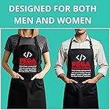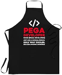 STURDY POLY-COTTON BLEND: Stay protected with a durable poly-cotton material. It's built for daily use and is machine washable. FITS EVERYONE COMFORTABLY: One size fits most. The adjustable neck and long ties ensure it fits securely and comfortably. Apron This Funny Pega Developer Apron / Design is the perfect Christmas or Birthday Present for Men and Women. POCKETS FOR CONVENIENCE: Store your necessities in the two big pockets, perfect for recipes, timers, or utensils.
