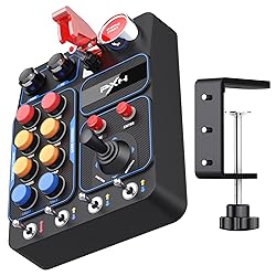 COMPATIBILITY & CONTROL INTEGRATION: Experience ultimate control in your simulations with the PXN CB1 Button Box – fully programmable buttons and switches put all essential functions at your fingertips. All inputs can be mapped in your simulation software, reducing reliance on a keyboard or in-game menus. Suitable for truck, racing, flight, and farming simulators. Driver-free connection to PC, or connect directly to PXN V9 GEN2, VD Series (VD4, VD6, VD10), and V10 PRO/Ultra racing wheel bases. MULTI-TYPE INPUT SYSTEM: Equipped with 19 Buttons across 9 switch types, the CB1 provides up to 30 programmable inputs for engine, lighting, traction, and auxiliary functions. This layout enables precise and flexible configuration across a wide variety of simulation titles. Note: Initial in-game button mapping is required for optimal accuracy. FULL SWITCH LAYOUT OVERVIEW: Includes: 2 pushable rotary encoders, 6 momentary buttons, 2 latching buttons, 1 covered toggle switch, 1 engine start button, 1 ESC button, 1 ENTER button, 1 directional joystick, 1 momentary toggle switch, and 3 latching toggle switches. ADJUSTABLE RGB BACKLIGHTING: Most buttons feature RGB halo lighting (excluding the joystick). Color and brightness can be modified using the “HANDLE + ABS/TC” key combination. A rear lighting switch provides quick on/off control, allowing you to match your setup’s visual style. VERSATILE MOUNTING OPTIONS: The CB1 Button Box offers flexible installation with 9 mounting holes on the back. It can be securely attached to a desk or steering wheel stand using the included metal desk clamps (supports up to 70mm thickness) or mounted to a stand via pre-drilled 100mm x 100mm VESA holes, ensuring a stable and adaptable setup.