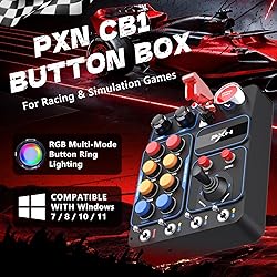 - PXN CB1 Button Box – OverviewThe PXN CB1 Button Box is a dedicated PC auxiliary controller panel created for simulation enthusiasts who require fast, precise access to essential functions. Featuring 19 controls across 9 switch types and supporting up to 30 programmable inputs, the CB1 streamlines cockpit operations for truck, racing, flight, and farming simulations. The unit integrates RGB lighting, USB plug-and-play connectivity, and flexible mounting options to support a wide range of setups.CompatibilityUSB Driver-Free: Connects to PC via USB and is detected instantly as a standalone controller. No drivers or extra software required.Compatible PXN Wheel Bases: Works with PXN V9 GEN2, VD Series, and V10 PRO/Ultra racing wheel via C-to-C connection. PC Only: Supports D-INPUT mode on PC. Not compatible with Xbox, PS4/PS5, Switch, or any X-input modes.Key SpecificationsDimensions: 184 × 144 × 78.5 mmWeight: 540 gMaterial: ABS housing for durabilityCustomizable Control SystemThe CB1 offers full customization for vehicle and equipment functions, including engine controls, wipers, lighting systems, cabin switches, auxiliary toggles, and more—providing efficient command access across all supported simulation genres.Switch Types Included2 pushable rotary encoders6 momentary buttons2 latching buttons1 covered toggle switch1 start/stop button1 ESC button1 ENTER button1 directional joystick1 momentary toggle switch3 latching toggle switchesRGB LightingMost buttons incorporate RGB halo effects for improved visibility and style. Color and brightness adjustments are available via the “HANDLE + ABS/TC” combination. A rear switch offers rapid lighting control when needed.Mounting FlexibilityDesk or Wheel Stand: Secure using the included metal clamps (up to 70 mm thickness).VESA Mounting: Supports monitor or accessory stands using the 100 × 100 mm VESA pattern.Usage ScenariosTruck Simulators: Lights, wipers, engine start/stop Examples: Euro Truck Simulator 2, American Truck Simulator, Truck Driver, Train Simulator, SnowRunnerRacing Simulators: Pit functions, car settings, auxiliary commands Examples: iRacing, Assetto Corsa, ACC, Project CARS 2, Forza Motorsport, Forza Horizon 4/5, F1 series, Dirt Rally 2.0, rFactor 2, RaceRoom, Automobilista 2, BeamNG.driveFlight Simulators: Flaps, switches, navigation lights, cockpit actions Examples: Microsoft Flight Simulator, X-Plane 12, Aerofly FSNote: ESC and ENTER must be assigned to their keyboard functions inside the game.Farming Simulators: Machinery attachments, lights, hydraulic controls Examples: Farming Simulator 25/22, Pure Farming 2018, Cattle and CropsInstallationUnbox and confirm all components.Select a mounting option and secure the unit.Connect the USB cable to your PC; the device will be detected immediately.(Optional) Connect to PXN V9 GEN2, VD Series (VD4, VD6 , VD10), and V10 PRO / Ultra with the C2C cable for extended settings.No driver installation is needed.How to Bind ButtonsOpen your game’s control settings.Select the function you want to assign.Press the desired CB1 button to bind it.Test and adjust as needed.PrecautionsDesigned for PC in D-INPUT mode only.Ensure all clamps and mounts are tightened before use.Avoid excessive force when operating switches.Keep away from liquids, heat, and moisture.Maintain proper cable routing to avoid strain.Button labels are fixed; custom labels may be added separately if required.
