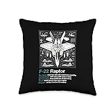 Perfect for aviation enthusiasts, military aircraft fans, military personnel and veterans, fighter jet lovers, pilot enthusiasts, aerospace-engineering students and professionals, technical drawing collectors, military supporters, aviation history fans, Features detailed F-22 technical drawing blueprint with specifications including impressive max speed capabilities, substantial payload capacity, combat range, high service ceiling, powerful dual-engine thrust, and precise wingspan measurement 100% spun-polyester fabric Double-sided print Filled with 100% polyester and sewn closed Individually cut and sewn by hand Spot clean/dry clean only