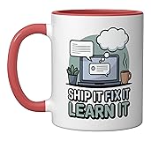 Ship It Fix It Learn It - Tech Startup Developer Ceramic Mug, Red/White
