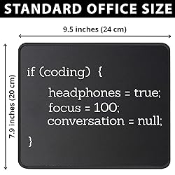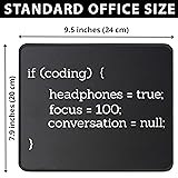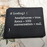 ULTRA-SMOOTH SURFACE: Optimized fine-weave texture ensures pixel-perfect tracking and responsive control for all optical and laser mice. Perfect for Gaming and high-precision tasks. NON-SLIP & STABLE: Heavy-grip, textured rubber base prevents unwanted movement, keeping the mouse pad firmly secured on your desk for maximum control. If coding headphones focus conversation design is for computer programmers, computer science students, software developers, computer tech supports, coders, hackers, anyone who loves mousemat internet, technology, coding, and computer programming mousemat Makes great present for computer , nerds, and wear it with pride to show that you have knowledge about , javascript, mousemat python, and binary code mousepads WATERPROOF & DURABLE: Features anti-fray stitched edges and a spill-resistant coating for easy cleanup and long-term durability. A reliable desk mat built to last.