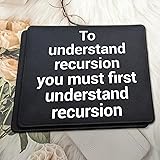 ULTRA-SMOOTH SURFACE: Optimized fine-weave texture ensures pixel-perfect tracking and responsive control for all optical and laser mice. Perfect for Gaming and high-precision tasks. NON-SLIP & STABLE: Heavy-grip, textured rubber base prevents unwanted movement, keeping the mouse pad firmly secured on your desk for maximum control. Great programmer and coding mousepad with mousemat the definition of recursive function call. If you don't understand recursion read this design again. Funny computer science and programming humor novelty for coders that prefer to program recursive. Mouse pad To understand recursion, you must first understand recursion. Funny mouse pad for mathematicians, programmers and computer science teachers or students. Wear one of these mousemat hilarious coding design if you love recursions. WATERPROOF & DURABLE: Features anti-fray stitched edges and a spill-resistant coating for easy cleanup and long-term durability. A reliable desk mat built to last.