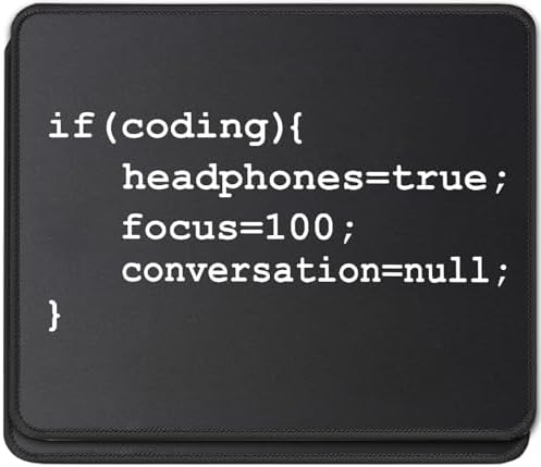 Code in comfort and style with this programmer-themed mouse pad, the ideal desk accessory for the software developer, web designer, or IT professional. Enjoy syntax-smooth gliding and pixel-perfect accuracy from the micro-textured cloth surface, optimized for all mouse sensors from laser to optical. This mousepad stays put (no 404 errors here) thanks to a heavy-duty, non-slip rubber base that grips your desk firmly. Built to last through countless deployments and coffee-fueled all-nighters, it features robust anti-fray stitched edges and a waterproof, easy-to-clean surface, making it the perfect tech gift for any computer science pro or coding enthusiast.