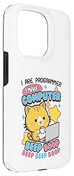 - Love programming, funny cat memes, and cute coding humor? This design featuring an adorable, yellow cat at a laptop with a coffee cup is perfect for any software developer, coder, or tech student. Ideal for men, women, and teens who love computer science and cats! Features a playful, pastel-colored graphic of a cute kitty coder with the text: “I Are Programmer I Make Computer BEEP BOOP BEEP BEEP BOOP.” Great humor for a network engineer, sys admin, web developer, or any computer expert.