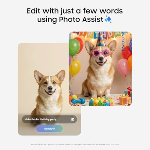 - TYPE IT IN. TRANSFORM IT FAST: Enhance any shot in seconds on your smartphone by using Photo Assist¹ with Galaxy AI.² Add objects, restore details, or apply new styles by simply typing or tapping