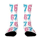- Bring some personality to your outfit with these 67 socks, designed with colorful dripping 6 and 7 graphics. The bold print gives them a fun, creative look that’s perfect for teens, students, and anyone who likes standout styles. Made with a soft and stretchy polyester-spandex blend, these socks feel smooth, stay breathable, and move comfortably with your feet. They’re great for everyday wear—school, hanging out, gaming nights, sports days, or just relaxing at home. Easy to wash and easy to wear, these novelty socks make a great small gift for friends, family, or yourself. If you want socks that are fun, comfy, and full of color, these 67 socks are a perfect pick.