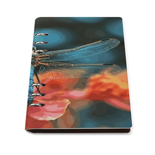 LPSBVNM Dragonfly On The Flower Leather Diary Spiral Notebook Hardcover Notebooks Logbook, Leather Material for Work & Note Taking, Journals for Writing Business for Office