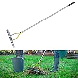Generic Dethatching Rake, Wide Stainless Steel Dead Grass Rake with Comfortable Handle, Easy Lawn and Garden Maintenance, for Fallen Leaves, Dead Branches