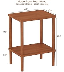 【100% Solid Wood Construction for Durability】Crafted with premium oak wood tabletop and beech wood legs (no MDF or particle board!), this side table boasts a sturdy build coated with odorless, waterproof, and scratch-resistant varnish—preserving the rich natural wood grain while ensuring long-lasting use. Supports up to 120 lbs, making it perfect for heavy lamps, potted plants, or other essentials. Equipped with anti-scratch foot pads to protect your floors from scuffs and damage. 【Space-Saving Design for Narrow & Small Spaces】Measuring 15.7”W x 11.8”D x 20.8"H, this small side table is tailored for tight corners, small apartments, or narrow spaces. It fits perfectly as a bedside table for lamps/phones, a couch side table for remotes/snacks, or even a compact patio side table. Maximize utility without sacrificing floor space—ideal for those seeking functional furniture for small living areas. 【Rich Walnut Finish to Elevate Any Room】In a warm, deep walnut finish, this wood side table adds a touch of sophisticated rustic charm and elegance to your home decor. Whether placed in the living room, bedroom, or office, it blends seamlessly with modern, farmhouse, industrial, or traditional styles—serving as both a practical storage solution (2-tier design for extra space) and a visually appealing accent piece. 【Convenient and Practical】This narrow end table is highly practical! It has a 2 tier storage design. You can easily place teacups and table lamps on the upper tier, and store books and small items on the lower tier, keeping clutter at bay. Versatile as a bedside tables, sofa side table, drink table, coffee table, snack table, patio table or plant stand. 【Tool-Free Easy Assembly in 1 Minutes】Thanks to the unique twist-and-lock structure and detailed illustrated instructions, assembling this walnut bedside table is a breeze—no extra tools required! You can have it set up and ready to use in just 1 minutes, saving you time and hassle. Perfect for busy homeowners, renters, or anyone who loves hassle-free furniture.