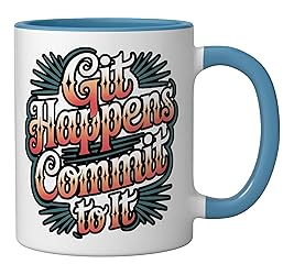 When git happens, commit to the chaos. A clever nod to developer or programmer at work. 11-ounce ceramic mug is dishwasher and microwave-safe, lead and BPA free Features glossy finish with accent colors on interior, handle, and rim of two-tone designs
