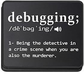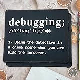 Material: Non-slip rubber base keeps the pad in place. 7.75" x 9.25" x 0.12" (3mm) Surface: Cloth texture compatible with optical and laser mice. Debugging is like being detective. Funny coding mousemat for computer programmers mousemat This is great design for programmers, coders mousemat and those who do , , ruby and python mousepads Durability: Stitched edges prevent fraying and peeling.