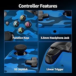 IWGAME Wireless Controller for X-BOX, Gaming Controller Support Turbo/3.5MM Audio Jack/Dual Vibration, Controller Compatible with X-BOX One/ One S/X, X-BOX Series S/X, PC, IOS, Android Platforms,with 2.4g Adapter(Blue Camo)