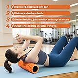 [High-Density Material] Our foam rollers are made of PVC and EVA, offering excellent cushioning and resilience. Lightweight, pressure-resistant, waterproof, sweat-proof, and easy to clean for long-lasting performance. [Effective Relaxation] Ideal for use before and after workouts, this roller effectively stretches muscles and relieves stiffness and soreness. Its triple-zone grid design mimics the pressure of fingers, palms, and thumbs, targeting deep fascia to enhance muscle flexibility. [Suitable for Everyone] Perfect for runners, athletes, yoga and Pilates enthusiasts, swimmers, and active individuals. Supports daily stretching and post-exercise recovery, helping to release tension in the shoulders, arms, legs, back, glutes, thighs, hamstrings, quads, and calves while reducing lactic acid buildup. [Easy to Carry] 18inch length is ideal for targeting all areas of the body while compact and portable enough to take them to your home, office, yoga class, gym and more, so that you can stretch and relax before or after exercise or yoga anytime, anywhere. [Protected by US Patent] Nos. 9,345,921; 9,539,167 ; 9,656,112 ; 10,278,890 and 10,695,260.